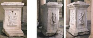base sacra modanata dotata di epigrafe sul fronte e di rilievi sui lati