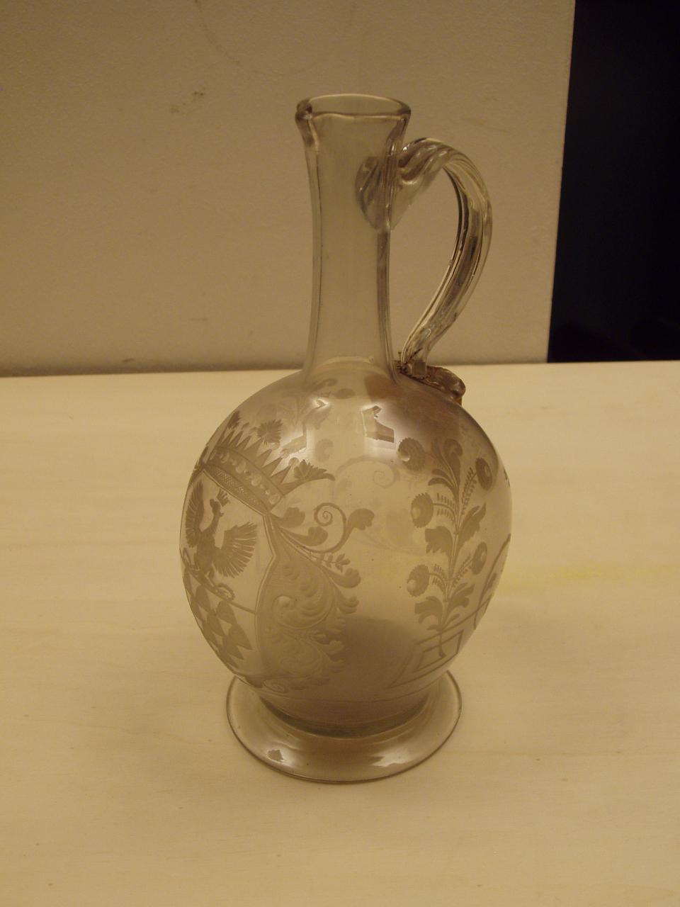 Brocca in vetro con stemma di Cesare Beccaria