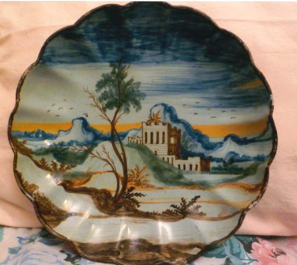 Bacile con bordo lobato paesaggio con castello