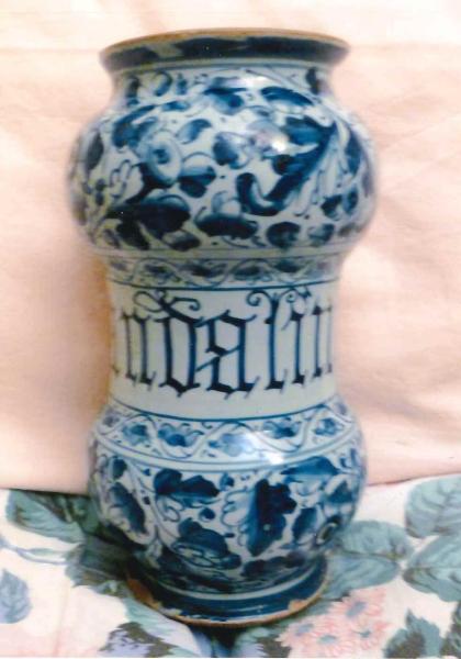 Albarello decoro blu su fondo berrettino
