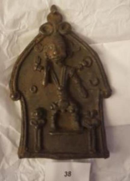Virabhadra con naga arrotolato sulla testa in funzione di turbante e grosso chiodo ribattuto sul retro