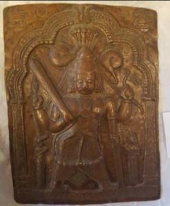 Figura tozza di Virabhadra con cintura di teschi accompagnato da Daksha e Sati