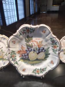Piatto decorato con uva e limoni nel cavetto