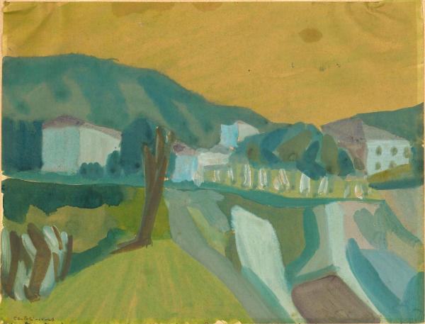- NOTIZIE STORICO CRITICHE Sul fronte in basso a sinistra: "Testori - 10 - 43"; sul retro in basso a destra: "«La casa rosa» / Sormano / Testori - 10 - 43" In una lettera a Ronchi databile tra il 19 e il 30 novembre 1943, Testori scrive: “Io quest’estate ho lavorato moltissimo, soprattutto alla pittura, benché solo ora cominci a veder saltar fuori qualcosa di buono: anzi sono sicuro che questo qualcosa e` dovuto al lungo lavoro di revisione e di studio che ho fatto quest’estate. Di positivo ho fatto due tempere (ritratti), due quadri a olio (“Donna nel bosco” e “L’incendio”, quest’ultimo non ancora terminato), una serie di acquarelli (paesaggi) che tra l’altro mi sono serviti per incontrarmi col paesaggio, e una buona serie di disegni."