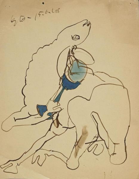 [Studio per una Crocifissione – Agnello con calice e Ostia]. angelo con calice e ostia