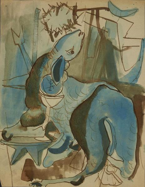 [Studio per una Crocifissione – Agnello con calice, Ostia e simboli]. angelo con calice e ostia