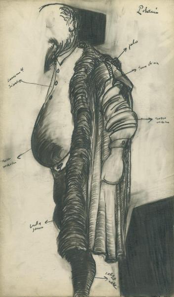 Polonio [Bozzetto per i costumi di Amleto]. figura maschile