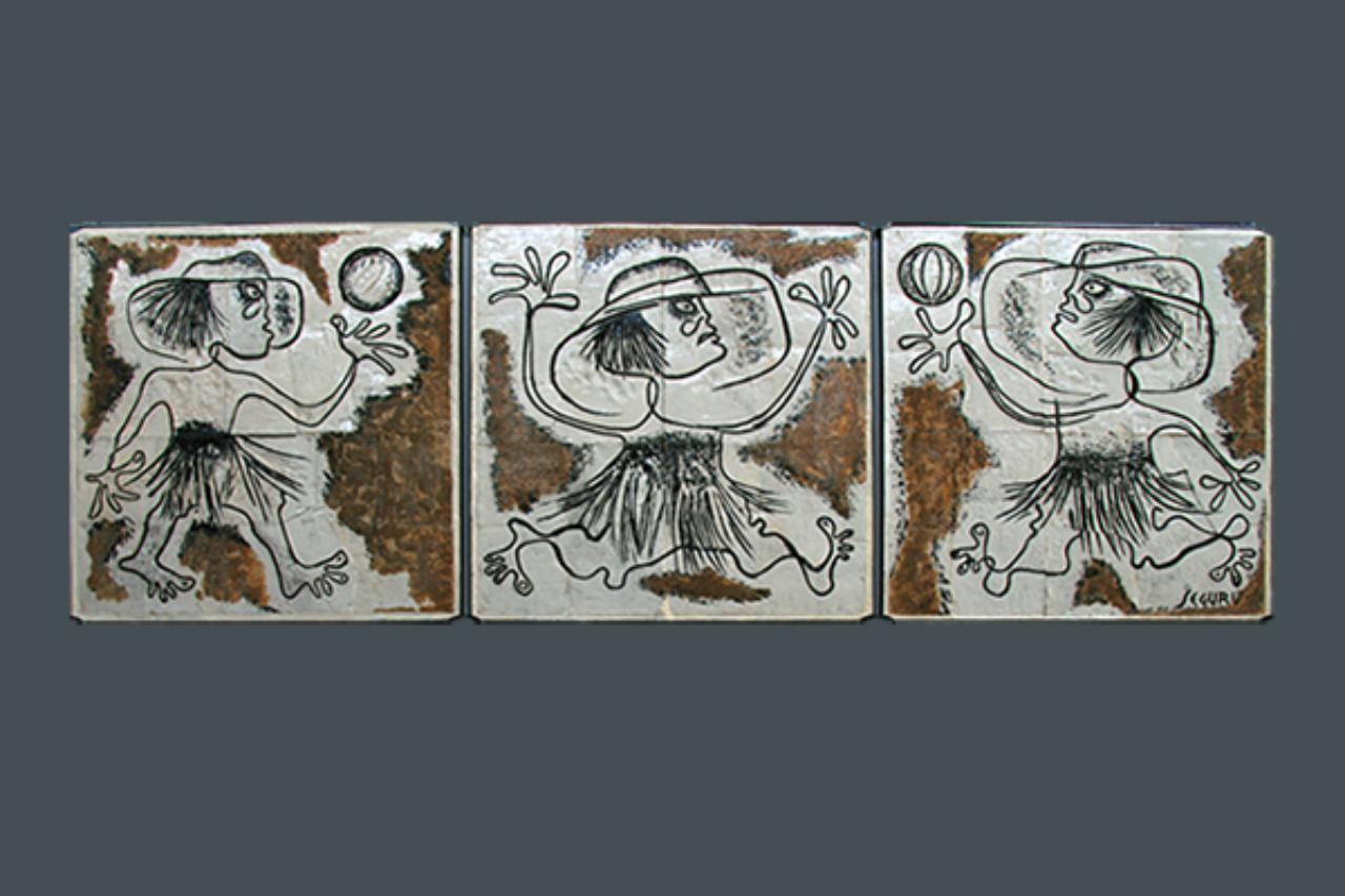 - NOTIZIE STORICO CRITICHE I pannelli decorativi che compongono il trittico realizzato da Albano Seguri raffigurano tre bambini che giocano a pallone. I personaggi sono stati tracciati con un movimento rapidissimo della mano che pare inseguire un febbrile arabesco. Ritornano così le modalità grafiche, le matasse di gesti e di moti e i voluti effetti d’abbozzo e di improvvisazione caratteristici dell’arte di Seguri. Come in altre sue opere, l’artista intraprende la strada del grottesco e del caricaturale e genera un forte rapporto di complicità tra la scultura e il disegno. Definito “comico scoppiante” dalla vitalità pura, Seguri libera nelle sue lastre una fantasia dal “ghirigoro” infinito con i piedi che invitano alla danza.\nI cinque trittici con bassorilievi di ceramica smaltata a fuoco che ornano il salone di quella che oggi è la sede del Settore Lavori Pubblici furono commissionati dal Comune di Mantova nel corso del 1963 agli artisti Albano Seguri, Enzo Nenci, Selvino Sabbadini e Cesare Lazzarini, con l’intento di abbellire la nuova Scuola Elementare “Maurizio Gonzaga” di Te Brunetti, inaugurata nel novembre dello stesso anno. Le opere dovevano raffigurare “scene e particolari di episodi di vita quotidiana, di lavoro, di intimità famigliare, idonei a ispirare nobili sentimenti nell'animo degli alunni e tali da rendere gaia e viva l’atmosfera dell’edificio" (Delibera di Giunta n. 1089 del 07/11/1963).\nLa scelta degli artisti fu affidata ad una Commissione, appositamente istituita, composta dal Sindaco Luigi Grigato, dal Soprintendente di Palazzo Ducale Giovanni Paccagnini e dal Direttore dell’Ufficio Tecnico del Comune Francesco Panelli. Tra gli artisti coinvolti vi era inizialmente anche Aldo Bergonzoni che declinò l’invito a favore di Nenci. Stabilito l’importo di 80.000 lire per ognuna delle quindici opere, nel settembre 1963 la Commissione procedeva ad assegnare ad ogni artista il numero e i soggetti dei pannelli da realizzare. Nel settembre del 1964 le opere risultavano opportunamente intelaiate dagli artisti e ancorate alle pareti della scuola. Nel corso degli anni Novanta del Novecento i pannelli venivano rimossi dalle pareti. Nel corso del 2014 le opere, sotto la Direzione dei Musei Civici, sono state recuperate dai depositi, restaurate e ricollocate nella loro sede e posizione originaria.\n\n\n