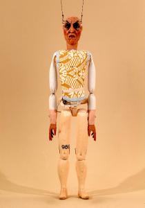 Corpo grande, tagliato ad incastro.\nTesta con bocca mobile con meccanismo a contrappeso.\nOcchi fissi.\nMani mobili con piombatura per bilanciamento con dita separate.\nPiedi fissi con piombatura.\nBilancino originale a croce, metodo Holden.