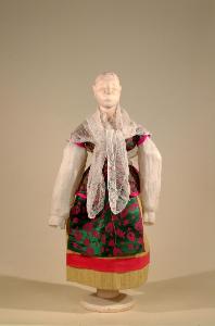 Costume di popolana del '600 per figura di taglia inferiore costituito da gonna, camicetta, corpino, grembiule, scialle