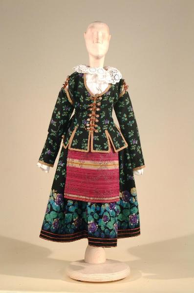 Costume di popolana del '600 costituito da camicia, gonna, corpino, grembiule