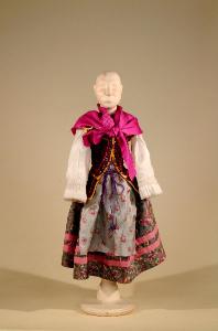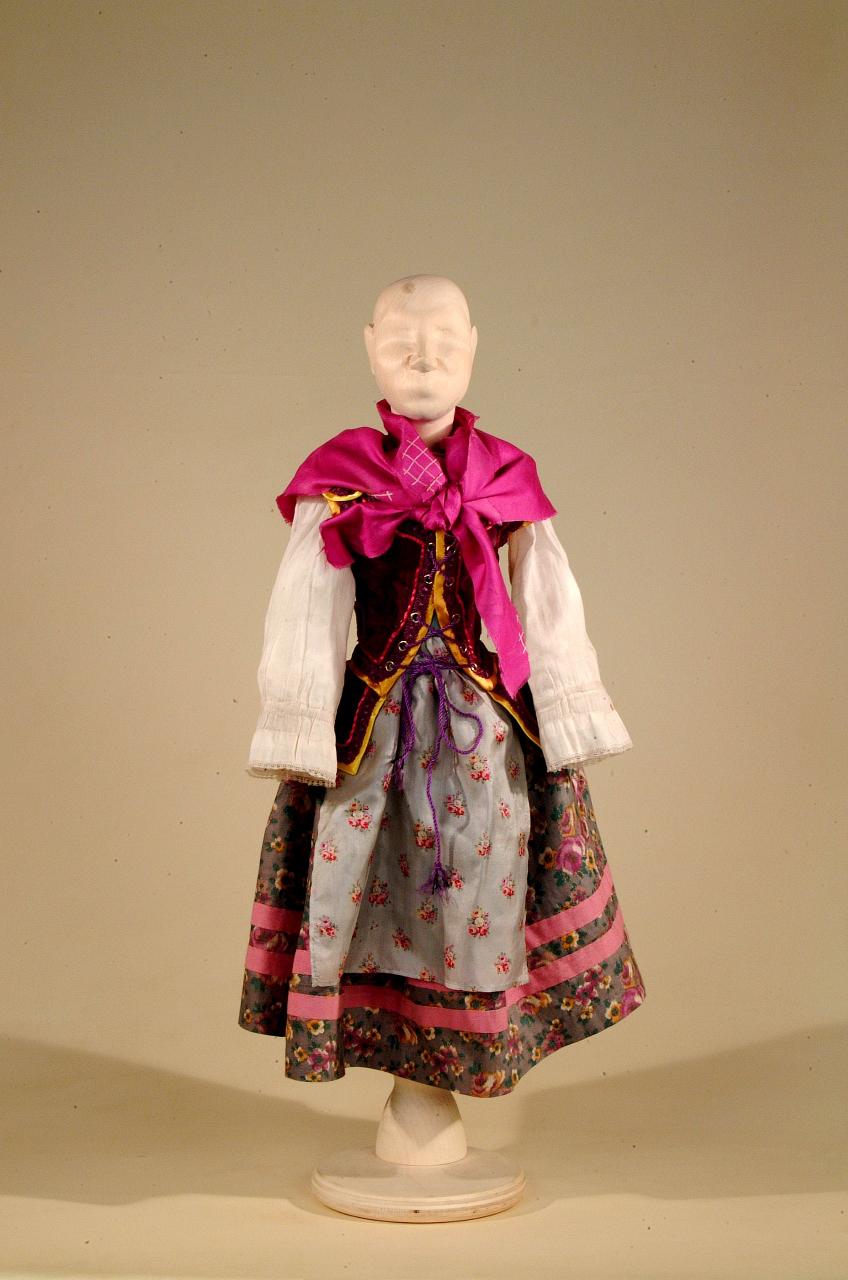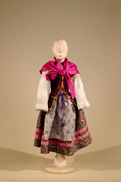 Costume di popolana '600 costituito da camicia, gonna, corpino, grembiule, scialle.