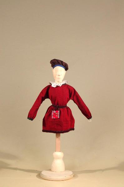 Costume per bambino popolano '400 per figurino costituito da veste, cintura, cappello, colletto e polsi.