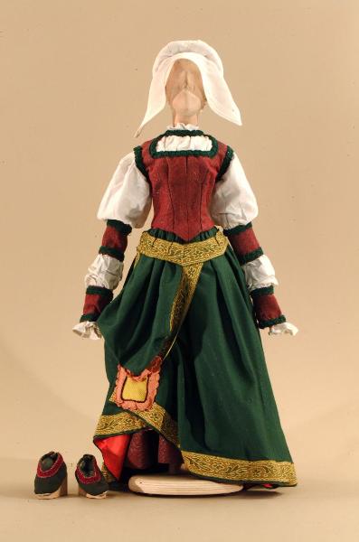 Costume per popolana del 1500 composto da gonna, corpino, cintura, cappello, scarpe.