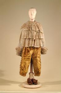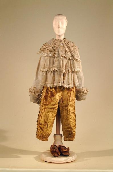 Costume per nobile del '600 costituito da pantaloni, camicia e scarpe.