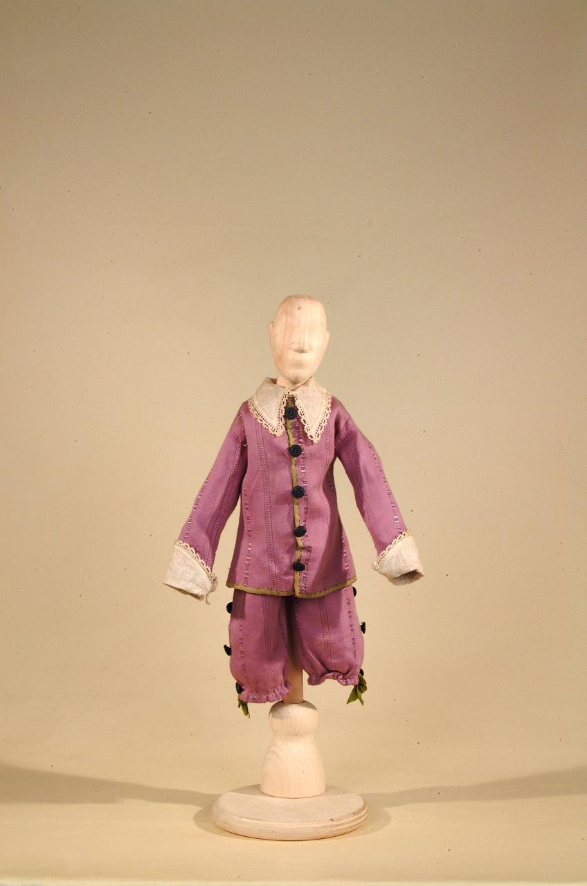 Costume di popolano del '600 per marionetta figurino costituito da pantaloni, giacca, calze.