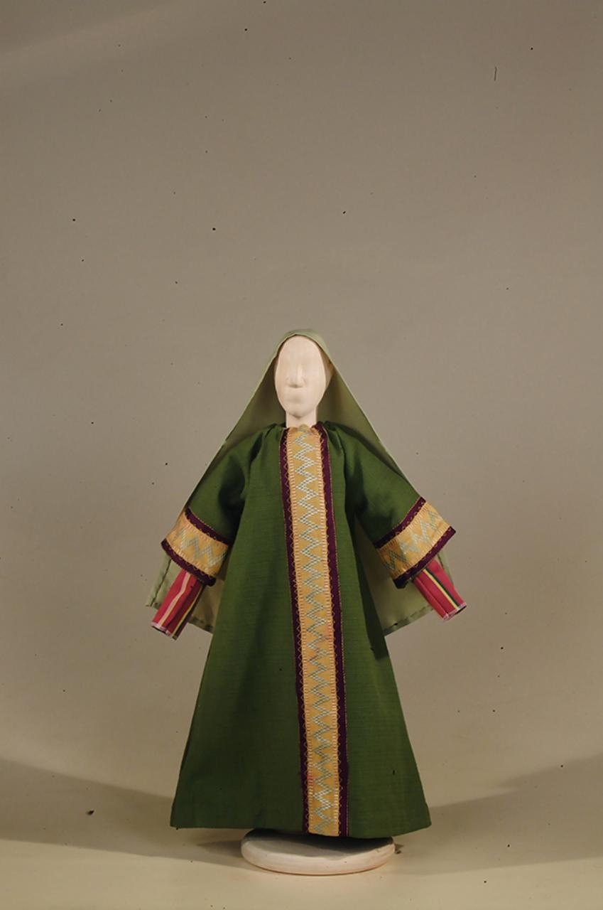 Costume borghese del '400 per figurino costituito da abito, velo, maniche