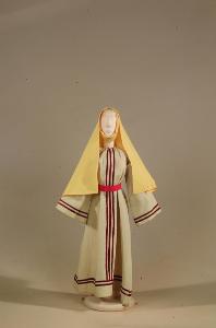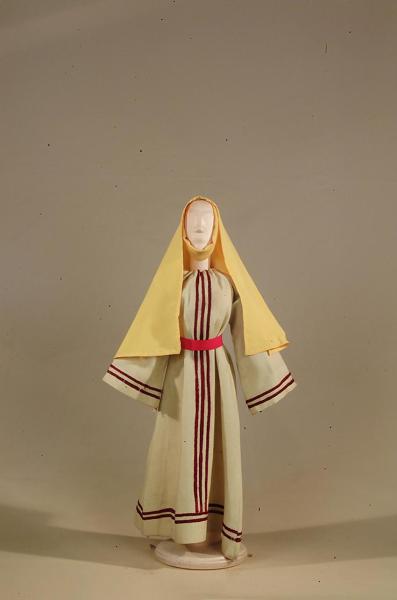 Costume popolana del '400 per figurino costituito da veste, velo, soggolo, cintura.
