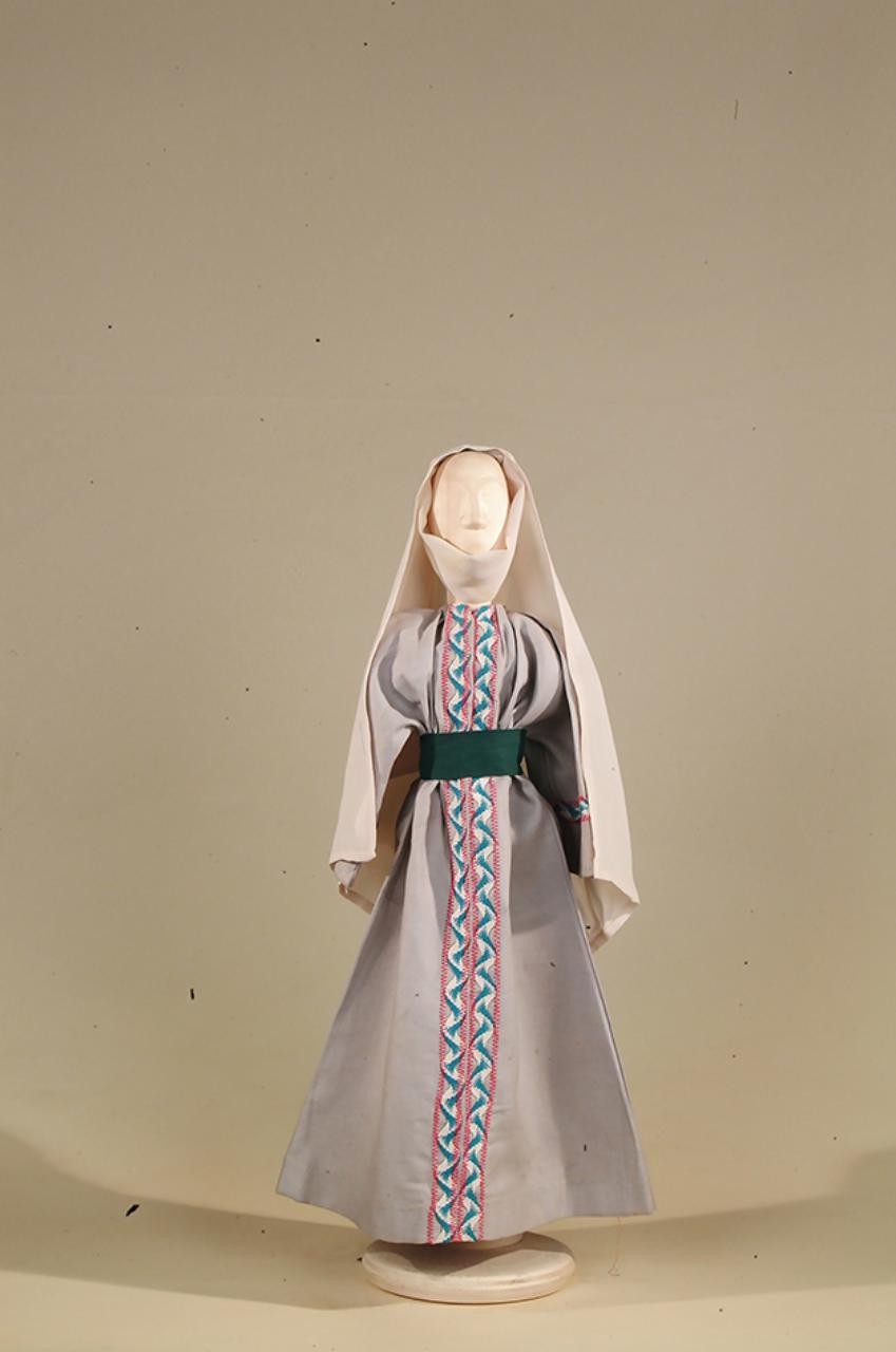 Costume popolana del '400 per figurino costituito da veste, velo, soggolo, cintura.