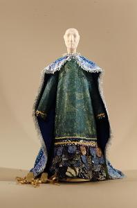 Costume per personaggio mitologico inserito in contesto del 1500 composto da veste, mantello, scarpe