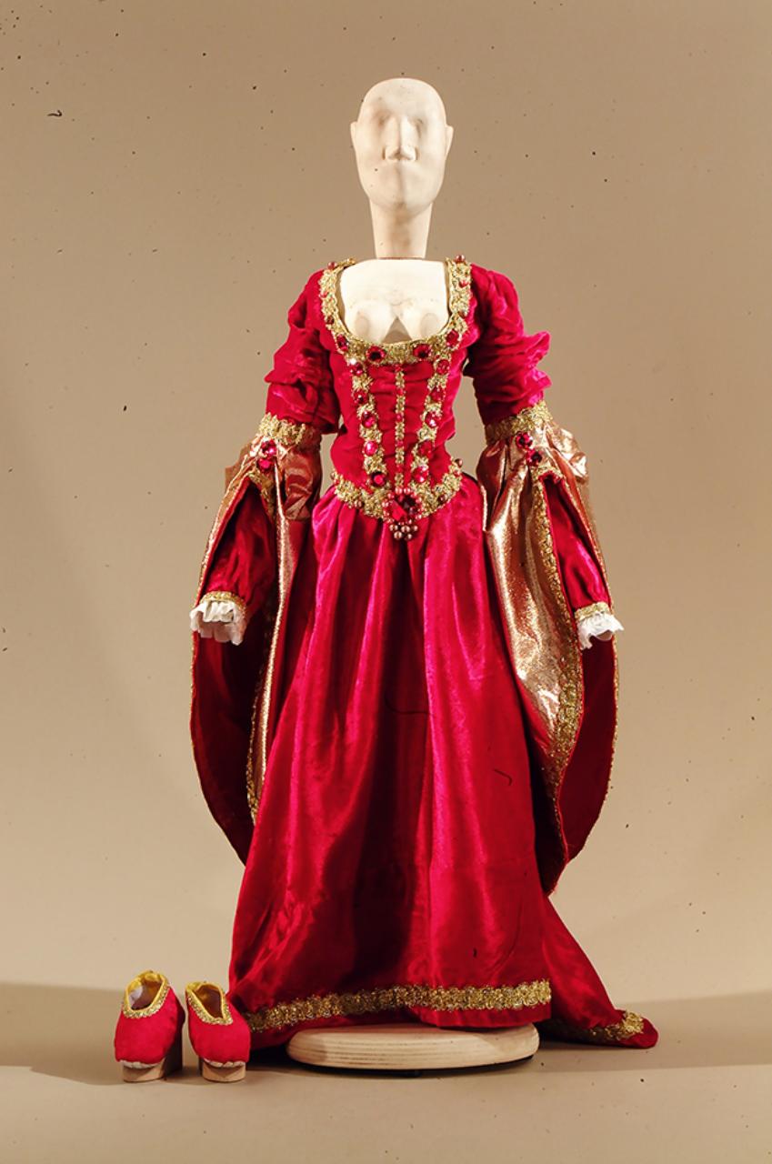 Costume per dama del 1500, composto di gonna, corpino, scarpe