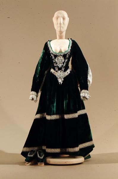 Costume per dama del 1500, composto di gonna, corpino, scarpe