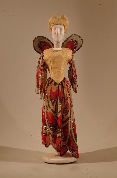 Costume fantastico per ballerina composto da corpino, gonna, cappello e ali