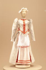 Costume da cameriera composto da gonna, corpino, cuffia e fiocco.