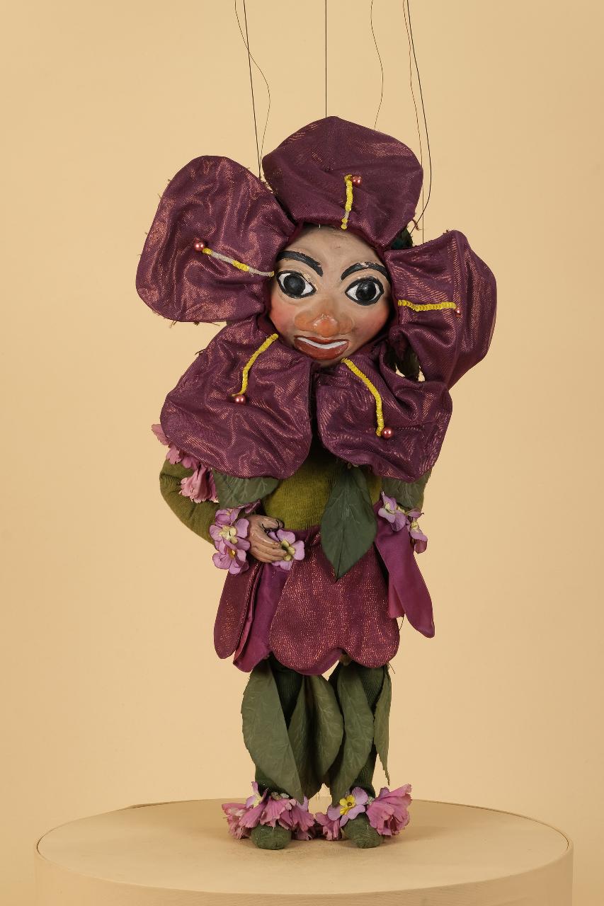 La figura rappresenta un personaggio fantastico, con naso grosso e occhi grandi e dipinti. Testa in cartapesta al corpo tramite collo in tessuto allungabile; occhi dipinti; corpo particolare per forma e dimensione in catapesta e legno di abete e pioppo; gambe attaccate con ferro al bacino; ginocchia ad incastro; piedi piombati; mani in tiglio fisse con dita unite. Bilancino originale a croce metodo Holden.