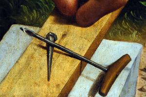 La Crocifissione è ambientata in un paesaggio all'alba. La tela presenta riferimenti alle stampe del ciclo della Piccola Passione (1512) realizzato da Durer e, per quanto riguarda lo scorcio di Cristo, dall'affresco del Pordenone nel Duomo di Cremona. Callisto Piazza, rispetto al precedente intervento nella cappella con le Storie di san Giovanni Battista, riesce a infondere all'opera uno stile drammatico accentuato dall'affollamento delle figure in primo piano. Il nuovo linguaggio del pittore mette in luce la sua adesione alla "maniera" nelle muscolature insisitite, nei dettagli realistici come la cesta di corda e il trapano che getta l'ombra sul chiodo, nel carnefice di spalle, forse opera del fratello Scipione, con i piedi sporchi in primo piano e l'ombra vera, dettagli reali che anticipano la pittura del grande Caravaggio. I colori diventano più smorzati, con modulazioni più cupe.