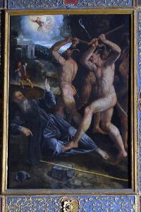 - NOTIZIE STORICO CRITICHE L'opera venne commissionata dal medico Giovanni Berinzaghi a Scipione Piazza nel novembre 1549 per decorare la cappella, lo stesso committente che trent'anni prima aveva ordinato il polittico al centro della stessa e i medesimi soggetti al padre e allo zio di Scipione, rispettivamente Alberto e Martino Piazza, oggi conservati presso il Museo civico di Lodi. I lavori procedettero piuttosto lentamente tanto che rimasero interrotti nel 1552 a causa della morte di Scipione, passando il 31 agosto nella mani di Callisto che li terminava l'anno successivo. Il dipinto rivela una velocità di esecuzione che ha comportato pentimenti e sbavature di colore, quest'ultimo caratterizzato da un impasto denso e un tono piuttosto cupo.