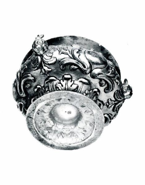- NOTIZIE STORICO CRITICHE Il turibolo presenta sul rovescio del piede, in un tondo inciso, un punzone con il leone di san Marco al centro che riconduce a una bottega milanese: tale marchio appartenne nel 1573 a Ludovico Marinoni, passando nel 1607 a Bernardo Ponzono e quindi nel 1615 a Bernardo Longono, rimanendo presumibilmente a questa bottega anche in seguito. La documentazione archivistica, inoltre, confermerebbe la cronologia indicata dalle risultanze stilistiche; dal 1637 infatti è censita la presenza tra i manufatti ecclesiastici della basilica dell'Incoronata di un unico turibolo d'argento (con navicella), che viene ad affiancarsi all'altro di "ottone" (anch'esso accompagnato da una navicella), quest'ultimo già attestato nel 1634.