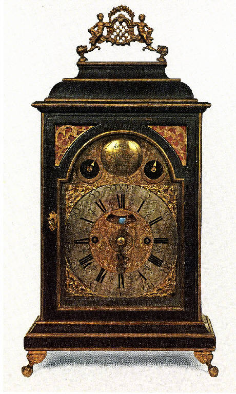 - NOTIZIE STORICO CRITICHE Il nome dell'autore e la località d'esecuzione sono incisi nel medaglione sovrastante il quadrante maggiore, affiancato da due quadrantini per la suoneria delle ore e dei quarti (quello a sinistra) e per fermare tale suoneria (quello a destra). Lo sportello sul tergo, se aperto lascia vedere il meccanismo, a platina rettangolare cesellata. Antoni Kurtzweil avrebbe operato a Vienna come costruttore di orologi almeno dal 1746 e sino alla sua morte, avvenuta l'anno 1765