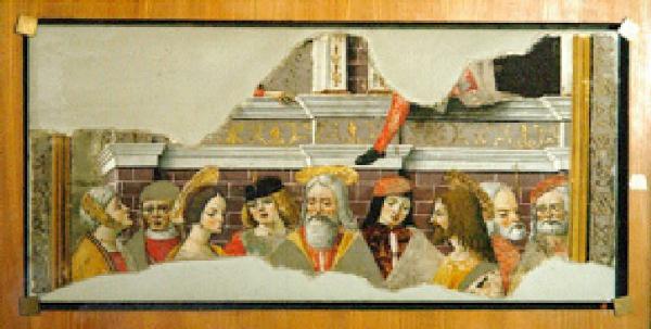 - NOTIZIE STORICO CRITICHE Questo frammento di affresco proviene dalla cappella di S. Anna, qui rimasto sino al 1914 quando è pervenuto al Museo civico. Attribuito da Mario Marubbi nel 1998 al pittore Girolamo Melegulo, nel 2000 viene riferito, sempre dallo stesso autore, a Matteo Della Chiesa evidenziano come l'opera si allontani dal preponderante linguaggio bramantesco del padre Giovanni, ancora visibile nella cappella del Battista, a favore di un approccio immediato e di un tono più dimesso, con un tentativo di ricercatezza fisiognomica, forse di derivazione leonardesca.