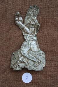 Raffigurante una donna orante di profilo, genuflessa nell'atto di offrire un cuore fiammeggiante