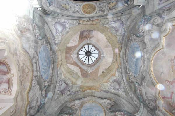 - NOTIZIE STORICO CRITICHE Gli affreschi settecenteschi si dispongono prevalentemente nella zona più vicina al transetto e nel coro. I lavori iniziano nella cappella dedicata a Santa Caterina d'Alessandria (navata destra, ultima cappella) grazie al testamento del conte Giambattista Modegnani del 1726. Le fonti antiche attribuiscono le quadrature con gli effetti architettonici illusionistici al Giovanni Battista Riccardi, mentre le figure sono state riferite da Vittorio Caprara a Giambattista Sassi, che qui usa colori luminosi e tinte pastello titpiche della vaporosità del rococò. Poco dopo, nel 1730, è attivo il fiorentino Sebastiano Galeotti nella cappella dedicata a San Pietro d'Alcantara dove la data e la firma dell'artista rimangono dipinte, anche se non perfettamente leggibili, nelle traversine della sedia. La tavolozza schiarita con i colori pastello dove predominano il rosa, i lievi cangiantismo, i tocchi di giallo e di blu dei manti sino al lilla dell'abito di Dio Padre sono caratteristici dello stile dell'artista.\nAgli anni Trenta risale anche la decorazione del coro della chiesa, che vede impegnato lo stesso artista, coaudiuvato nelle splendide quadrature dal cremonese Francesco Natali. Tra il 1754 e il 1756 viene invece rifatta la cappella dell'Immacolata Concezione, posta nel transetto destro. L'autore della nuova architettura si deve al capomastro Michele Sartorio di Lugano, mentre la decorazione pittorica è riferibile ai fratelli Giuseppe Antonio e Giovanni Antonio Torricelli, sempre provenienti da Lugano, il primo architetto e l'altro figurista. Gli affreschi iniziano dalla parete di fondo per poi spostarsi sulla volta. Nella nicchia trova posto la statua della Beata Vergine Immacolata, realizzata in occasione dei nuovi rifacimenti da Giuseppe Antignati di Milano.