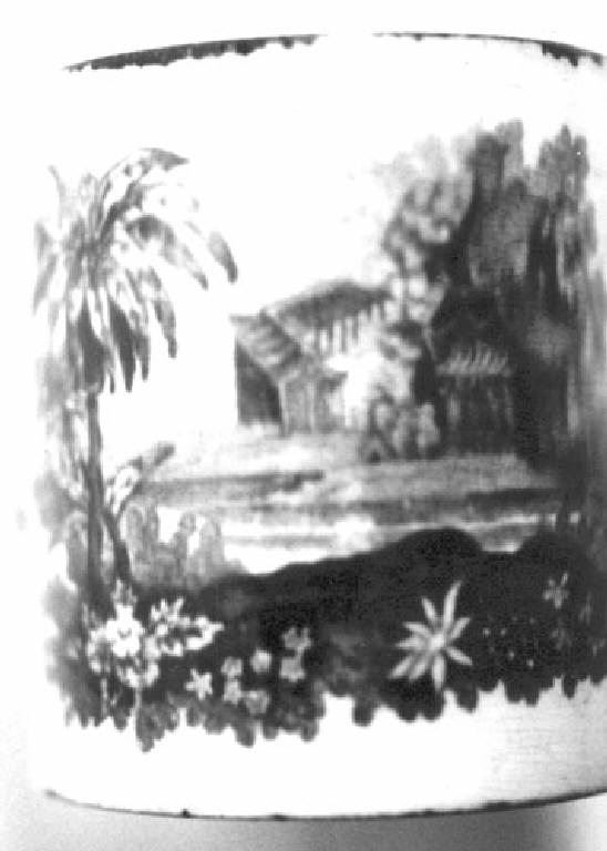 Tazza cilindrica con manico. Colori: blu su fondo bianco