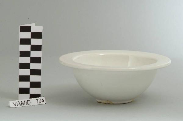 - NOTIZIE STORICO CRITICHE La ciotola, appartenente ad un servizio da tavola (nn. inv. 789-796), è realizzata nella forma "Saturno". Il design essenziale e funzionale indica una datazione ormai avanzata nel Novecentro. Come riporta il cartellino applicato alla zuppiera num. inv. 793, l'oggetto in esame venne realizzato nel 1970 dalle Ceramiche Pareschi in collaborazione con Albino Reggiori. L'artista lavenese cominciò a fare ceramica nel 1955 ma fu dopo il 1981 che la sua ricerca si sviluppò prevalentemente nel campo ceramistico, in modo particolare sui materiali ceramici legati alla propria terra. Tipologicamente l'oggetto in esame si lega ad un servizio da caffè (nn. inv. 784, 786, 800-803) e ad un servizio da thè (nn. inv. 785...804) conservati nel Museo delle Terraglie di Laveno.