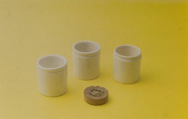 Vasetto color avorio con corpo cilindrico.