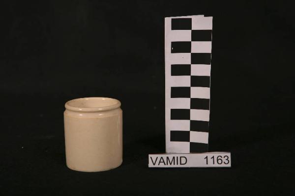 Vasetto color avorio con corpo cilindrico.