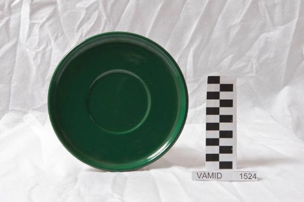 Piattino circolare con bordo rialzato di colore verde.