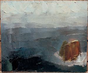 - NOTIZIE STORICO CRITICHE Una veduta puramente naturale di un mare agitato, la cui potenza evoca analoghe immagini courbetiane, troviamo in "Positano, 10": un digradare di robuste spatolate di colore che trapassano dal bruno profondo del mare in primissimo piano per giungere, senza soluzione di continuità, fino al colore biancastro del cielo sullo sfondo. In posizione decentrata è collocata la sagoma solitaria di un faraglione color ferrigno, incorniciato dal biancore dei frangenti.