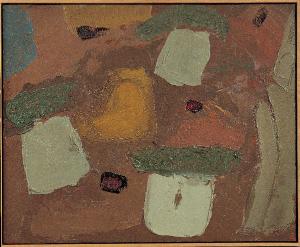 - NOTIZIE STORICO CRITICHE Vi sono curiose analogie formali e cromatiche tra questo nuovo quadro "africano" e la serie "Petroliera" di due anni precedente: la veduta dall'alto, con perdita dell'orizzonte, le forme fluttuanti (in questo caso le goffe forme dei baobab, la cui chioma ricorda le isolette di "Niger 4"), i colori caldi e luminosi. Il quadro rappresenta la piazza centrale dell'isola di Gorée, di nuovo un luogo carico di storia: qui si raccoglievano infatti gli schiavi che dovevano essere avviati alle colonie americane. Un vecchio patibolo è rappresentato dalla sagoma gialla al centro. Macchie nere, brillanti come pietre d'onice, raffigurano altrettanti gruppi di africani. In quest'opera è ancora più evidente come, nella calda luce, le forme tendano a sciogliere i propri nessi spaziali per galleggiare in una sorta di pasta fluida in cui soltanto le macchie nere, come appunto nei dipinti nigeriani del '70, sembrano costituire dei punti di stabilità.