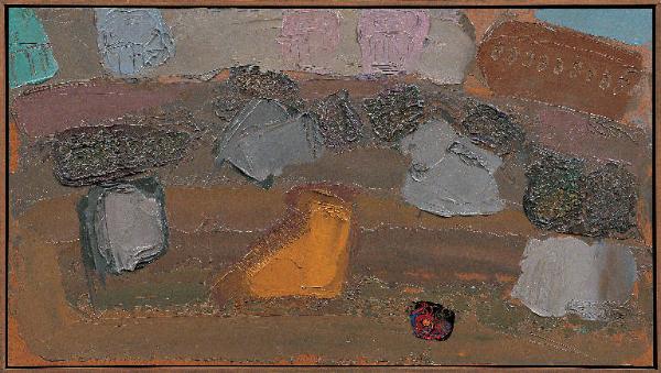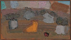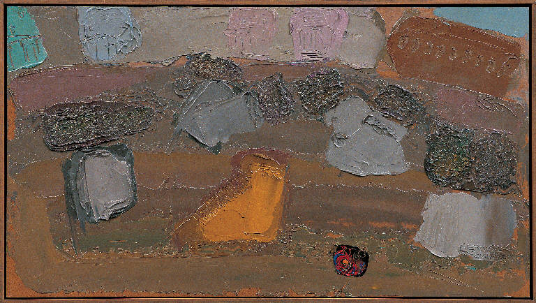 - NOTIZIE STORICO CRITICHE Vi sono curiose analogie formali e cromatiche tra questo nuovo quadro "africano" e la serie "Petroliera" di due anni precedente: la veduta dall'alto, con perdita dell'orizzonte, le forme fluttuanti (in questo caso le goffe forme dei baobab, la cui chioma ricorda le isolette di "Niger 4"), i colori caldi e luminosi. Il quadro rappresenta la piazza centrale dell'isola di Gorée, di nuovo un luogo carico di storia: qui si raccoglievano infatti gli schiavi che dovevano essere avviati alle colonie americane. Un vecchio patibolo è rappresentato dalla sagoma gialla al centro. Anche in quest'opera è evidente come, nella calda luce, le forme tendano a sciogliere i propri nessi spaziali per galleggiare in una sorta di pasta fluida in cui soltanto le macchie nere, come appunto nei dipinti nigeriani del '70, sembrano costituire dei punti di stabilità.