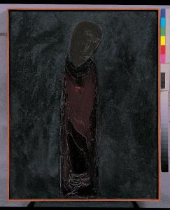 - NOTIZIE STORICO CRITICHE Siamo al cospetto di un'opera caratteristica dell'ultima maniera di William Congdon, nella quale è consapevole una sorta di iterazione e allo stesso tempo di presa di distanza dall'affannosa ricerca sul tema del Crocefisso. Ricalcando soluzioni iconografiche precedenti, l'artista sintetizza la scena con non comune sicurezza espressiva, in poche nette spatolate alternate alle velature di colore dello sfondo.