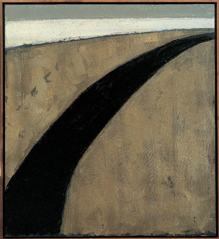 - NOTIZIE STORICO CRITICHE Con "Morte della terra" del dicembre, Congdon ritrova un tema su cui comporre una articolata serie di variazioni, in cui egli includerà anche i dipinti del novembre (con conseguente modifica della numerazione). Di questi ultimi, in "Morte della terra, 1 (o "La Ferita")" ritorna prepotente il motivo della strada di cui sono accentuate le valenze luttuose e a cui l'artista dedica una lunga meditazione proprio nel bel mezzo del suo travaglio per i dipinti "Morte della Terra."