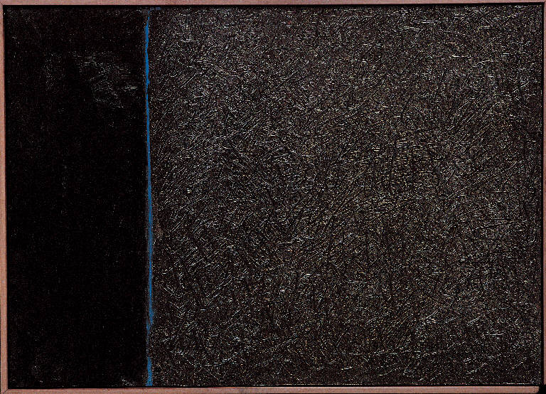 - NOTIZIE STORICO CRITICHE Anche in questo quadro al rapporto gerarchico cielo-terra si sostituisce un rapporto puramente seriale, mentre la distinzione tra i due elementi è affidata al diverso trattamento del colore, più sottile, uniforme e sfumato nel cielo, più denso e lavorato nella terra. Il che probabilmente consegue da una nuova visione dei campi, già collaudata in anni precedenti, che corrisponde al desiderio di rovesciare un punto di vista divenuto troppo abituale, accentuando il carattere bidimensionale del dipinto e conferendo così alla linea di orizzonte la natura, più dialettica e drammatica, di taglio-sutura.