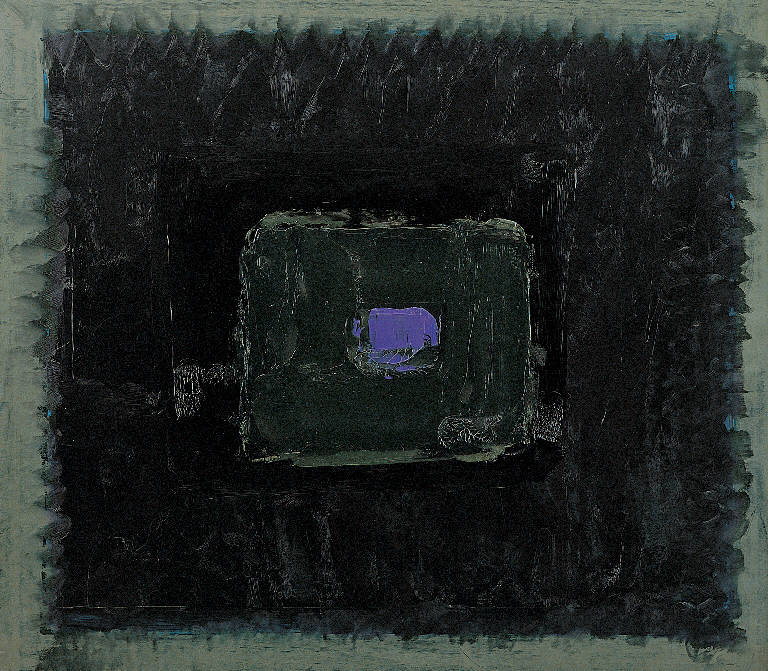 - NOTIZIE STORICO CRITICHE La tendenza ad emanciparsi da precedenti configurazioni di paesaggio consegue un apice in questa opera in cui i quattro rettangoli concentrici sembrano replicare il perimetro del pannello stesso. La rigorosa frontalità della composizione, con le masse di colore che si inseriscono come "finestre" l'una nell'altra, ipnoticamente e forse in accordo con certi archetipi orientali, ovvero lo sfrangiarsi dei contorni del rettangolo maggiore, sono tutti elementi che fanno pensare ad una sorta di "omaggio a Rothko". Del resto lo stesso artista scrive nel diario, nel giorno dell'esecuzione del dipinto: «I campi de-terrati = Scuola di New York: io avevo tradotto la scuola di New York nei campi della Bassa Milanese»; e ai giorni successivi risalgono due lettere, rivolte rispettivamente a Giuseppe Mazzariol e a Giovanni Testori, nelle quali l'artista discute il proprio rapporto con la pittura di Rothko.