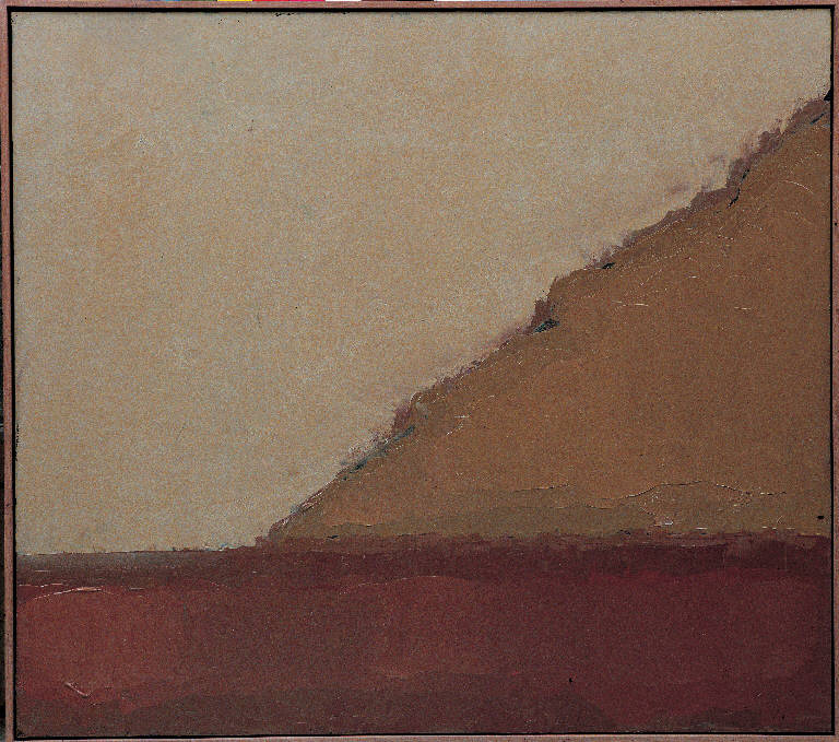 - NOTIZIE STORICO CRITICHE In "Dicembre Arancione", la struttura minimalistica di "Dicembre" viene dinamizzata dalla diagonale prospettica, che pare suggerire una sorta di dialogo-compentrazione tra cielo e terra, e dalla vibrazione delle masse cromatiche, qui delicatamente sfumate nei contorni e soprattutto ravvivate dal caldo cromatismo dei rossi: l'efficace ossimoro della "nebbia ardente", che compare nel diario di questo periodo, dice come l'artista vada approfondendo anche una propria personale teoria del colore in relazione allo specifico contesto della Bassa milanese: le nebbie e le foschie, velando la luce, la trattengono e la traducono in "calore".