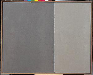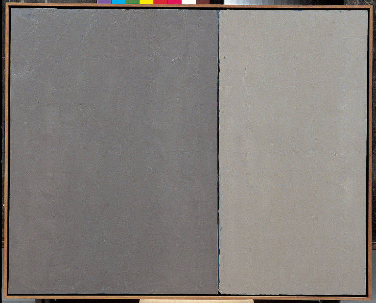 - NOTIZIE STORICO CRITICHE "Cielo-Neve", che ripropone il ribaltamento dell'orizzonte dei "Cielo e terra", testimonia della completa rinuncia a ogni movimento che non sia il purissimo accordo tra le due vaste e asimmetriche aree di colore e la vibrazione che la sottile linea divisoria - quasi un taglio alla Fontana - introduce nel loro punto di connessura. Un'armonia in grigio, ove i valori del cielo e della terra (cielo e neve, in questo caso) risultano rovesciati. Un altro passo verso lo "svuotamento" della immagine pittorica che costituirà una delle importanti linee di tendenza della pittura di Congdon verso la fine degli anni '80.